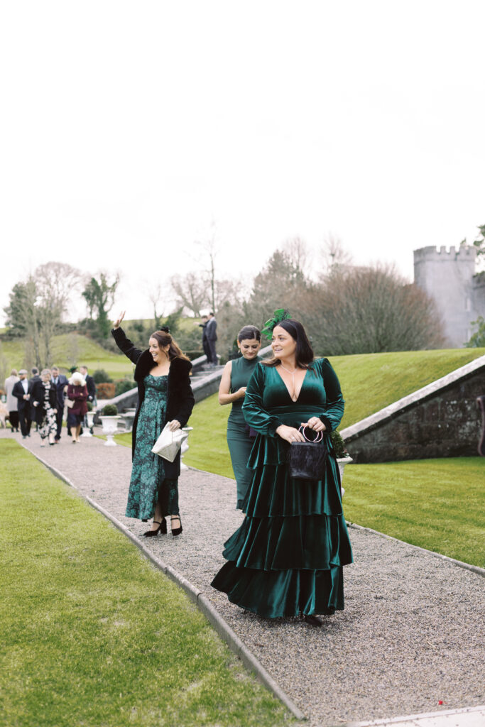 It was destination wedding set in an Irish castle, where heritage and romance came together beautifully. With ancestral roots woven into every moment, horses and hounds on the grounds, the sound of the piper, Irish wolfhounds standing proudly greeting the guests , children dressed in tartan adding a heartfelt Irish touch, and ladies in flowing green dresses paying tribute to the Emerald Isle. That was magnificent! I could go on and on …